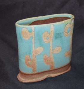 Brown & Turqoise Blue Studio Stoneware Pottery Vase Signed Dudgeon