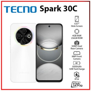 (New) TECNO Spark 30C 4GB+256GB WHITE Dual SIM Unlocked Android Cell Phone