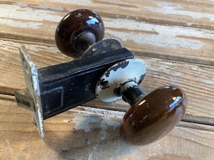 Antique Mortise Set Brown Porcelain Knobs Closet or Interior Door Unmarked 1920s