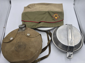 Lot of vintage 50's/60's boy scout items : 2 Hats, 1 Canteen, and one Mess kit