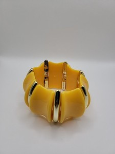 Vintage Bracelet Bangle Yellow Gold Tone Stretch Jewelry Costume