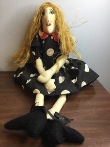 Handmade folk art cloth Witch? doll - straw hair tall