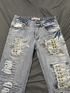 VTG Kosmo Lupo Denim Japan Jeans Grunge Distressed Patches Rare 28x32 (0064-2)
