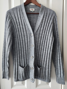 Vintage Classic Fashions Grey Vertical Stripe Cardigan Pockets- Size Large