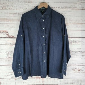 Lauren Ralph Lauren 100% Linen Striped Button Down Size 1X Navy Roll Tab Sleeve