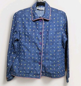 Vintage 90s Keren Hart Denim Jean Polka Dot Colorful Women's Jacket Size Medium