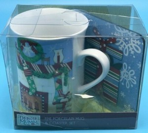 Debbie Mumm Christmas Mug Gift Set Fine Porcelain plus Matching Coaster