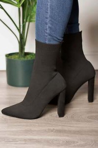Liliana Flashy-1| Women's Black Sock Ankle Boots| Pointed Toe Stiletto Heels