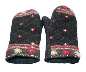 Recycled Wool Fleece Lined Mittens Womens Embroidered Red/Black Felted Wool (S)