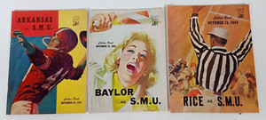Lot of 3 Vintage SMU College Football Programs 1960s Arkansas Baylor Rice