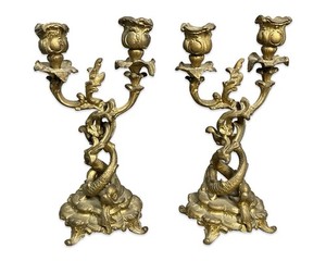 Antique FRENCH ART NOUVEAU Old GROTESQUE Koi DOLPHIN Fish CANDELABRA Candlestick