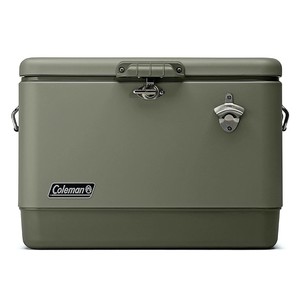 Coleman 54 Qt Ice Chest Stainless Steel Belted Matte Cooler, Sage (Open Box)