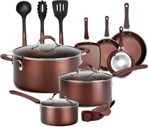 NutriChef Nonstick Cooking Kitchen Pots and Pans, 14 Piece Set, Bronze(Open Box)