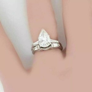 Solid 14k White Gold Moissanite Bridal Set Wedding Ring 3.00 CT Pear Cut VVS1
