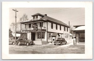 Postcard Mobil Gas Station Cars Street View Adirondack Mts Speculator NY 1960s
