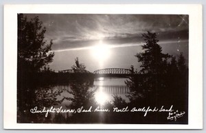 Postcard RPPC Bridge Saskatchewan River at Dusk North Battleford SK Canada c1947