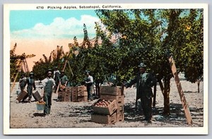 Postcard Farm Workers Picking Apples Sebastopol California c1920s