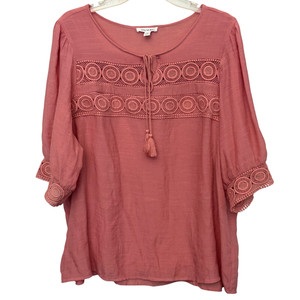 Palm Rio Pink Coral 3/4 Sleeves Embroidered Top - Size 1X