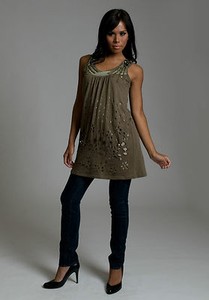 Cutout Beaded Cotton Sleeveless Women Fashion Above Knee Lined Tank Tunic Dress