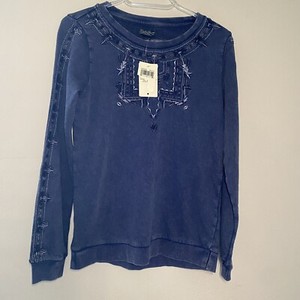 Lucky Brand Sweatshirt Women XS Blue Embroidered Boho Chic Crewneck