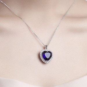Heart Blue Sapphire Natural Diamond Halo Pendant 14k Solid White Gold NO CHAIN