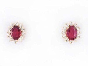 2ct Oval Cut Natural Ruby & Diamond Halo Women Earring 14k Solid Yellow Gold