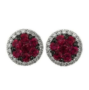 1.7ct Natural Ruby & Diamond Halo Stud Earrings 14k Solid White Gold Gift