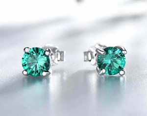 1ct Stud Earrings Natural Round Emerald Solitaire Design 14k Solid White Gold