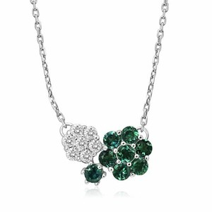 2ct Emerald Natural Diamond Dual Flower Pendant 14k Solid White Gold NO CHAIN