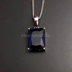 1ct Natural Sapphire & Diamond Solitaire Pendant 14k Solid White Gold NO CHAIN