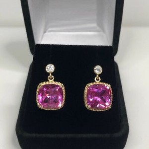 2.3ct Natural Sapphire & Diamond Beaded Drop Earrings 14k Solid Yellow Gold