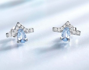 2ct Stud Earrings Natural Aquamarine & Diamond Crown Design 14k Solid White Gold