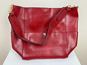 Genuine Leather Red Shoulder Purse Pouch 11"x 6" Single Handle 1 Pocket