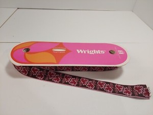 Vintage Wrights Pink Maroon & Brown Maple Leaf Jacquard Woven Ribbon Trim 9 yds