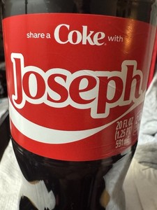 Share a Coke with Joseph 2025 Personalized Gift Coca~Cola Bottle 20oz Comb Ship
