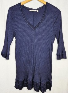 Soft Surroundings Women's Blue Ribbed Knit Tunic Top Size Large