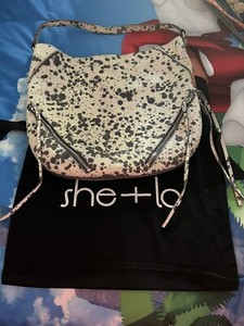 She + Lo Leather Expanding Gray Splatter Shoulder Hobo Bag Purse Tote Ladies