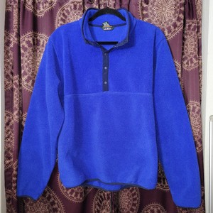 LL BEAN Mens Size M-reg Snap Fleece Jacket Blue Half Snap Polartec