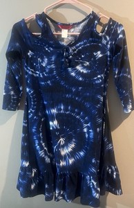 1st Kiss Girls Brand Blue Tye Dye Dress Long Sleeve Slit Girls Sz 10