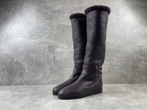 Jimmy Choo Belted Hight Shearling Leather Burgundy Boots Size 37 Made In Italy