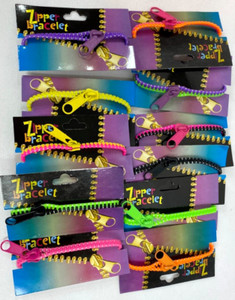 24Pc Neon MultiColor Zipper Bracelets w/Cannister "Stocking Stuffers/Party Favs"