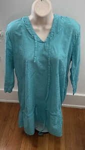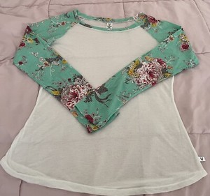 Venley Womens Top Size 2X Floral Mint Long Sleeve Crewneck Pullover Made In USA