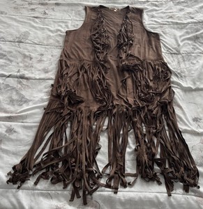 Penelope Women's Festival/Western Long Faux Suede Fringe Vest Size L Brown Boho