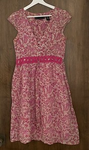 Allison Brittney Dress Womens Medium Fit & Flare Pink Floral Barbie Cotton Boho
