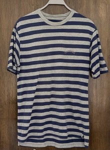 Vintage FACONNABLE Women’s T-Shirt [M] STRIPED COTTON Embroidered Logo Gray Blue