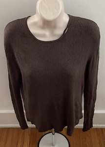 Barney’s New York Blouse Silk Blend Brown Ribbed Size M Women’s Long Sleeve