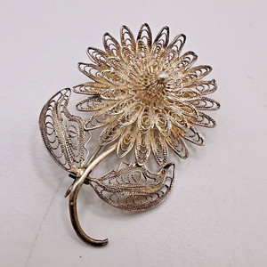 Sterling Cannetille Flower Brooch Filigree Sunflower Chrysanthemum Woven Silver