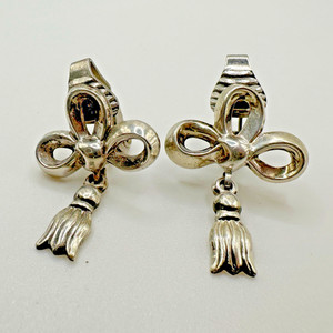 Sterling Bow And Tassel Earrings Clip On Vintage Silver 925