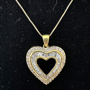 Heart Pendant Baguette Crystal Necklace Sterling Gold Vermeil 925 New With Tags