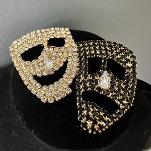 Rhinestone Theater Mask Brooch Comedy Tragedy Black And White Face Pin Vintage